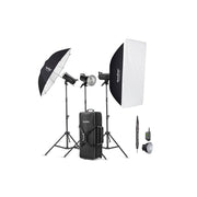 Sastav seta: 3x SK300IIV glave, 1x softboxSB-BW 60-90, 2x stativ 304 (200cm),1x kišobran UB-004 (100cm bijelo / crno),1x kišobran UB-002 (100cm srebrno / crno),1x norm. reflektro / usmjerivač,1x XT-16 radio odašiljač,kablovi, žarulje i torba