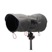 This versatile rain cover meticulously designed to safeguard your camera equipped with a super-telephoto lens from the elements—be it rain, sand, or mud. Compatible with both DSLR and mirrorless cameras, its adjustable diameter and length, coupled with a secure strap and Velcro mechanism, ensure a perfect fit for telephoto lenses up to 600mm/2.8.
