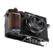 Fotopro QAL-X100VI Grip je idealno rješenje za korisnike Fujifilm X100VI i Fujifilm X100V fotoaparata koji cijene ergonomiju i jedinstven dizajn. Omogućuje sigurno držanje i smanjuje umor tijekom dugotrajnog snimanja. Izrađen od visokokvalitetne ebanovine i aluminija, rukohvat kombinira elegantan, vintage dizajn s izdržljivošću i snagom. Svaki je komad unikatan zbog prirodnih uzoraka drva. Drška omogućuje jednostavno otvaranje LCD zaslona bez skidanja. Arca-Swiss sustav i brojne rupe za montažu od 1/4" i 3/8" dodatno povećavaju udobnost držanja. Pametan dizajn također omogućuje jednostavan pristup pretincu za baterije. Grip je težak samo 76 g, što ne opterećuje posebno fotoaparat, ali utječe na udobnost korištenja.