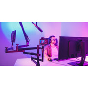 Camrock Vloger Desk Stand Pro inovativno je stolno postolje koje vam omogućuje udoban i dobro organiziran rad uz široku paletu opreme. Čvrsta stezaljka osigurava prikladnu montažu na stolove debljine do 48 mm, a modularni dizajn omogućuje vam da optimalno prilagodite pojedinačne komponente kompleta trenutnim potrebama studijskih snimanja, streamova, webinara ili vlogova snimljenih od kuće. Zglobne ruke omogućuju rad od 360 stupnjeva i precizno pozicioniranje opreme kao što su kamere, kamkorderi, mikrofoni, ekrani za pregled, LED svjetla ili teleprompteri. Uz držač za mikrofon, kugličnu glavu za kameru opremljenu pločicom za brzo otpuštanje i ručicu sa standardnim navojem od ¼“ (inča), dovest ćete u red svoju radnu plohu i povećati kvalitetu svojih foto / video uradaka!