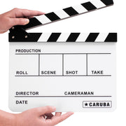 This plastic Caruba Professional Director Clapper (whiteboard marker) is a very useful tool for filmmakers and videographers. With this clapperboard, synchronizing image and sound is a piece of cake. In addition, you can use the clapperboard to mark certain scenes and takes. The sharp "clap" sound produced by the clapper board is easy to identify in the audio track, and the closing of the clapstick can be easily found in the video track. The two tracks can then be precisely synchronized by matching the sound to the movement.