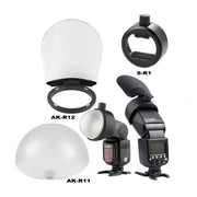 Također se može koristiti sa Godox S-R1 adapterom koji standardnim fleševima omogućava korištenje "ROUND HEAD" pribora (Godox AK-R1), na svim klaišnim speedlite bljeskalicama.