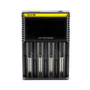 Nicecore D4 je univerzalni pametni punjač kompatibilan s gotovo svim cilindričnim punjivim baterijama, čime se eliminira potreba za posjedovanjem nekoliko punjača. D4 automatski detektira Li-ion, NiMH i Ni-Cd baterije, a ručnim odabirom također može puniti LifePo4 baterije. Inteligentni sklop za punjenje odabire optimalni način punjenja (CC, CV i dV/dt) za danu bateriju, a svaki od četiri utora za punjenje na D4 mikroračunalu zatim neovisno prati i puni bateriju. Nadalje, integrirani digitalni LCD zaslon jasno prikazuje tijek punjenja, napon, struju i vrijeme dok inteligentna funkcija automatskog isključivanja prekida struju kada je punjenje završeno. Nitecore D4: najnapredniji potpuno automatski digitalni punjač na svijetu. Jednostavno je kao umetanje, otkrivanje i punjenje