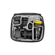 The medium, black Camera Cube V2 from Peak Design is designed to protect and organize your photo, video, and drone gear. It can be used as organization inside another bag or by itself. Store small mirrorless kits or full pro photo, video, and drone setups. It is made to fit in most Peak Design travel bags and can be securely attached inside with the included C-Clips. This cube can also fit in other brand's bags. It comes with different-sized FlexFold hook-and-loop dividers that you can configure multiple ways to suit your gear. Included shelf dividers allow vertical stacking to maximize capacity. This cube is made from a Bluesign-approved 160D nylon canvas shell that has weatherproof taping and a weatherproof Ultra Zips zipper. The main opening is wide, so you can see and easily access all your gear. There is also removable padding, and you can tuck the flap away for faster access when using the cubes in another bag. An included floating pocket stores filters, lens caps, and other small accessories. This cube features dual side zippers, which allow you to access your gear from the side access points of your 45L Travel Backpack. External Cord Hook attachment loops let you carry the cube with any Peak Design strap, which is sold separately.