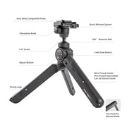 Držač Minismartphonea može se odabrati i smjestiti u nogu stativa radi veće kompaktnosti i funkcionalnosti; a rotirajući "cold shoe" sa bočne strane omogućuje fotografima da poboljšaju svoju kreativnost dodavanjem dodataka kao što su svjetla ili mikrofoni.