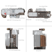 SmallRig “Retro” kavez za FUJIFILM X100VI 4557 dizajniran je za zaštitu kamere i pružanje višestrukih sučelja za proširenje za olakšavanje stvaranja sadržaja. Kavez u retro stilu montira se na kameru vijkom 1/4"-20 na dnu i jednom bočnom bravom s lijeve strane, a silikonski jastučići sprječavaju ogrebotine. Ugrađeni ergonomski drveni rukohvat osigurava čvrsto držanje. Kavez omogućuje nesmetan pristup gumbima kamere, utorima za kartice, LCD zaslonu, MCS prekidaču, bateriji itd. Kavez ima više ugrađenih sučelja kako bi zadovoljio sve vaše potrebe: 1/4"-20 otvor s navojem, ARRI 3/8"- 16 otvor za lociranje, držač za hladnu cipelu, otvor za remen, itd. Također je kompatibilan s gornjom ručkom (ID: 2736), mikrofonom (ID: 3487), RGB video svjetlom (ID: 4055), remenom za ručni zglob (ID: 3848), Osim toga, Arca-Swiss ploča za brzo otpuštanje na dnu omogućuje izravnu montažu na stativ tipa Arca. Na dnu je ugrađen dvoglavi ključ za jednostavno rastavljanje i sastavljanje Navlaka za cipele s utisnutim zvučnim valom "FUJIFILM" i godinom osnutka kao naše priznanje FUJIFILM-u Također dolazi s gumbom za otpuštanje zatvarača koji osigurava mekan i ugodan dodir.