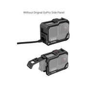 SmallRig GoPro Hero 9 Black Cage 3084 is designed for protecting the camera, providing multiple accessory mounts, and compatible with microphone adapters. The cage supports lens replacement , and it's compatible with the Max lens mod.The cage is locked by pressing the cover and released by pushing the button. The top and right sides are equipped with two cold shoe mounts that can be connected to accessories such as microphones and LED lights. The bottom contains a foldable GoPro mount compatible with the original GoPro baseplate, and a 1/4 threaded hole can also be directly connected to a tripod. The side panel is a quick-release for battery switches. You can charge the camera through the USB-C port without opening the panel.