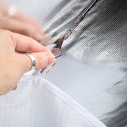 Dolazi sa 2 difuzna platna, unutarnjim i vanjskim čime se postiže ujednačena raspršenosti svjetla. Unutrašnjost softboxa je srebrna.