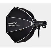 SMDV FLIP36 je osmerostrani brzo sklopivi softbox promjera 90cm, namjenjen studijskoj fleš rasvjeti (i za male bljeskalice uz GODOX S-type nosač).