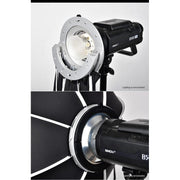 Uz odgovarajući adapter softbox se može postaviti na studijku rasvjetu većine proizvođača (S-type Bowens/Godox/Fomei, Broncolor, Elinchrom, Profoto, Hensel, Multiblitz V / Multiblitz P).