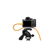 • Prevents tension due to accidental tugging or tripping on data cable from causing abrupt and incorrectly-angled detachment of cable from camera data port