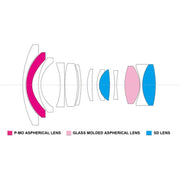 • 2 asferična i 2 staklena elementa sa super niskom disperzijom potiskuju kromatske aberacije.