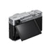 For media playback, preview, and menu navigation, the X-E5 features a 3" touchscreen LCD with three-axis tilting and 1.04m-dot resolution. Offset to the left side of its aluminum top plate is the X-E5's rangefinder-style OLED viewfinder. With a 2.36m-dot resolution, .62x magnification, and 100% coverage area, the EVF provides an accurate preview of the camera's capturing area. Emulating a viewfinder from an analog SLR, the EVF can be switched into Classic Display mode, which creates a clean visual interface with only the exposure information remaining. Both the touchscreen LCD and the EVF offer three Surround View modes that dictate whether the outside edge of a frame is outlined, semi-transparent, or fully blacked-out when shooting in aspect ratios other than 3:2.