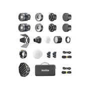 Magnetski komplet ima Godoxov mikrooptički dizajn i radi s reflektorima leća za kontrolu područja svjetlosti i kuta difuzije.
