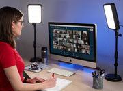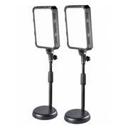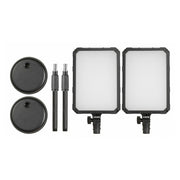 S dva kompaktna PL 24Vario LED stolna svjetla s promjenjivom temperaturom boje. Za ravnomjerno i meko osvjetljenje kod fotografiranja i video snimaka. Posebno prikladno za portrete, intervjue, društvene mreže, vlogove, video konferencije, webinare, fotografiju beba i djece, kao i mrtve prirode, snimke na stolu i makro snimke. Mogućnost prigušivanja. Glavni način rada. Svako s podesivim stolnim postoljem s okruglom bazom.