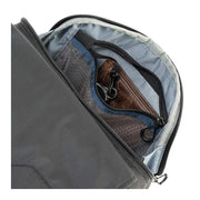 Flip-top lid with magnetic closure provides quick access to front pocket