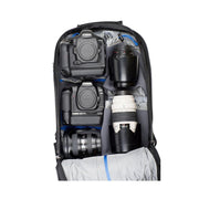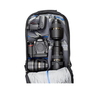 Bring two gripped or un-gripped DSLRs, four detached lenses, related accessories, an up to 17" laptop, a tablet, and personal items on your next photo adventure with the black Shape Shifter 17 V2.0 Backpack from Think Tank. The Shape Shifter gets its name from the ability to save space by compressing to a depth of only 3" when empty. The pack features separate laptop and tablet compartments, and a spacious, zippered main compartment with neoprene pockets and wraps to store, protect, and organize gear. On the front exterior of the pack is a pocket for the base of a small tripod, and adjustable straps to secure the upper and lower sections. Additional storage is provided by exterior pockets, organizer panel, and a plush pocket for a cell phone with an up to 5.5" display.