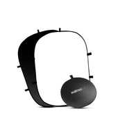Profesionalana složiva dvostrana crna i bijela pozadina na elastičnom okviru. Pozadina se brzo postavlja i isto tako i slaže nakon korištenja.